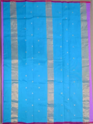 This saree is a beautiful blend of pure silk and linen, giving it the characteristic brilliance and light weight.