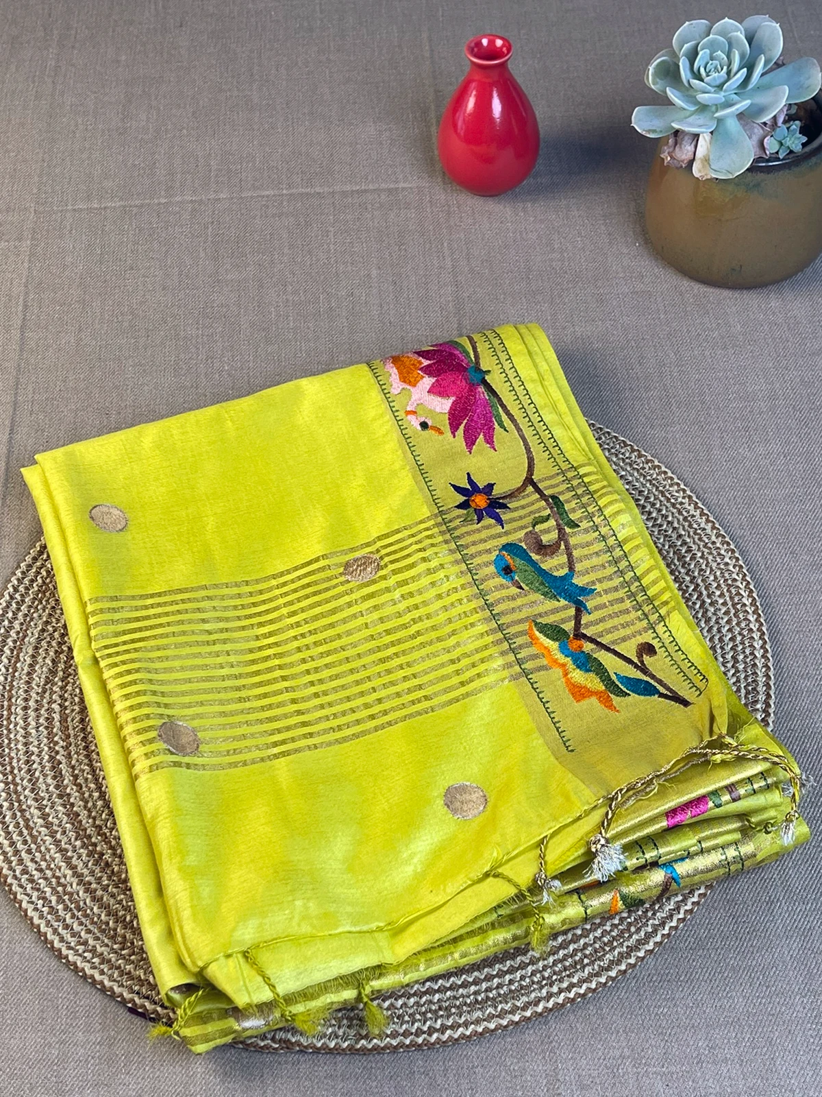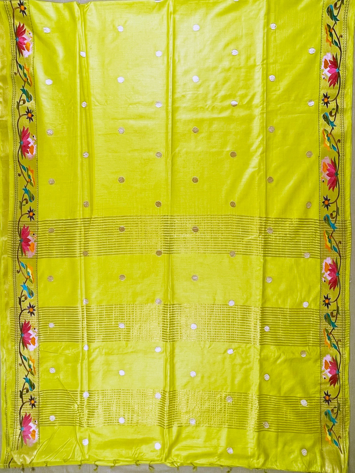 The pallu has beautiful golden lines and tassles.